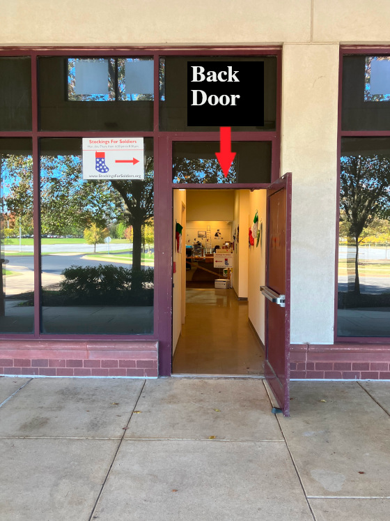 Out of courtesy for our new neighbor to our left “Crunch Fitness”, we ask that volunteers coming to help us at the Stocking Store, (especially large groups), please park in the old Christmas Tree Shops parking lot and then enter through our back door. The lot and back door are around to the right of our store as shown below:
